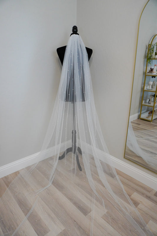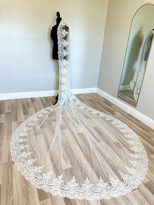 Timeless Romance- Beige Flower Lace Cathedral Veil